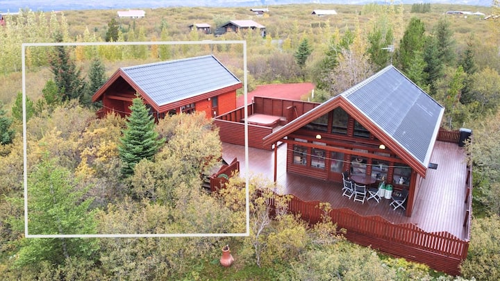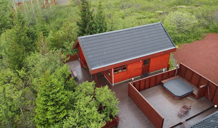 يقع الكوخ على بعد 10 دقائق فقط من Geysir و Gullfoss في الدائرة الذهبية! منظر جميل هو المكان الذي يتم وضعه فيه ومن المدهش جدًا الاستلقاء في حوض الاستحمام الساخن في مساء الشتاء وإلقاء نظرة على النجوم والمناطق المحيطة الجميلة.