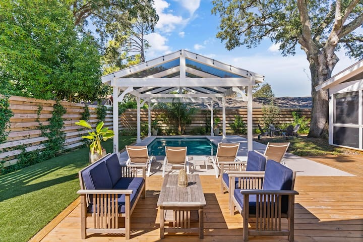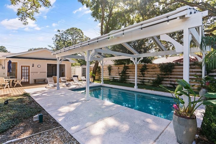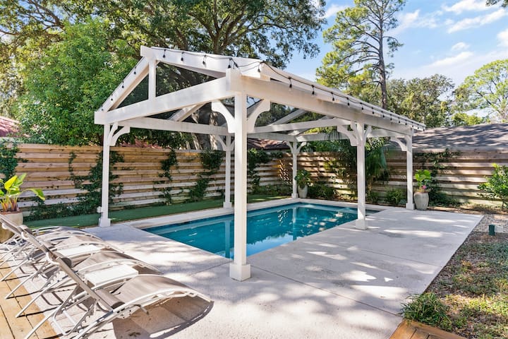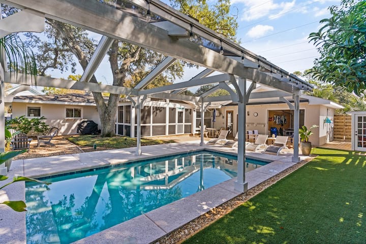 بيت شاطئي عائلي مثالي مع حمام سباحة ودراجات وأكثر!