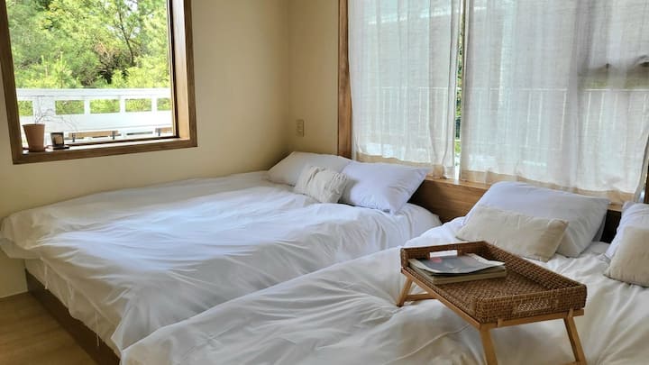 # ايكولاند # ساريوني شوب بابايا A2 طابق غرفة شواء فردية حوض استحمام داخلي حوض استحمام خارجي غرفة نوم سرير واحد 2