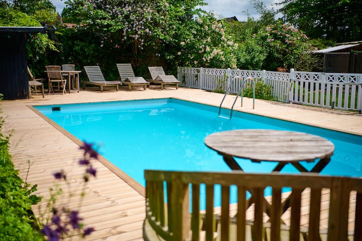 بيت مريح مع حمام سباحة قريب جدا من الغابة