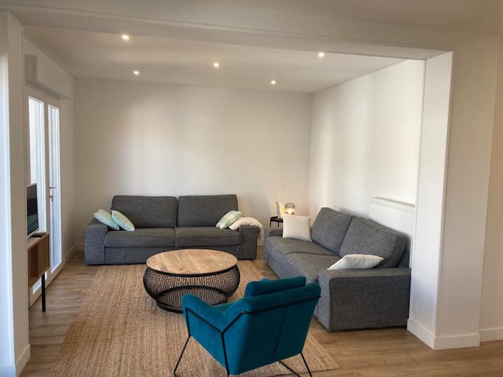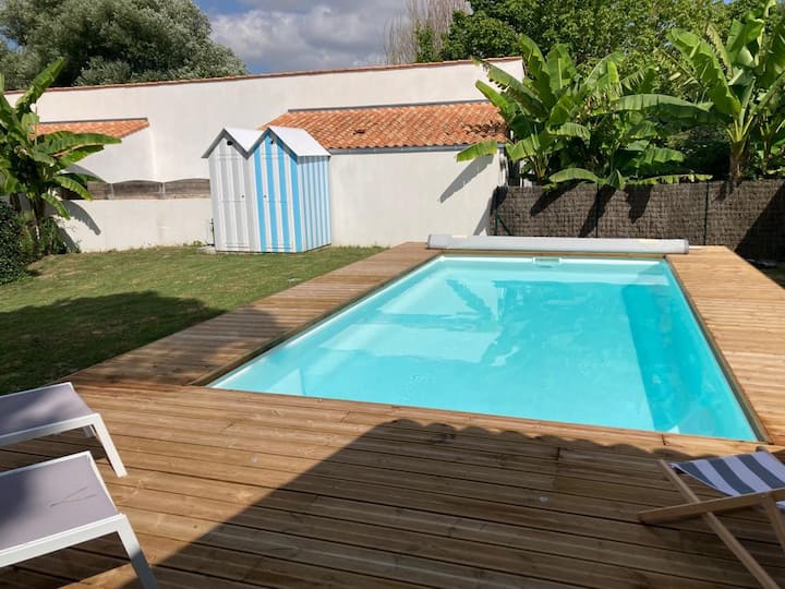 منزل كبير قريب من الشواطئ مع حمام سباحة.