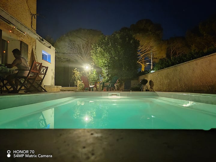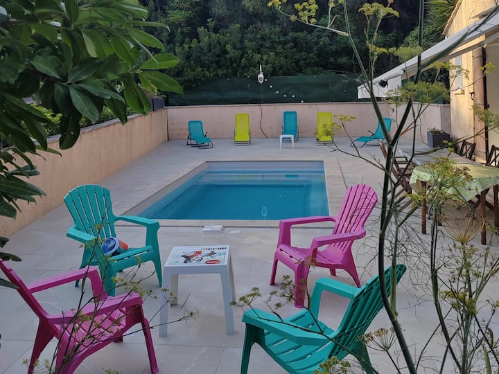 * استوديو مريح * 4 أشخاص، حمام سباحة، بحر، حديقة