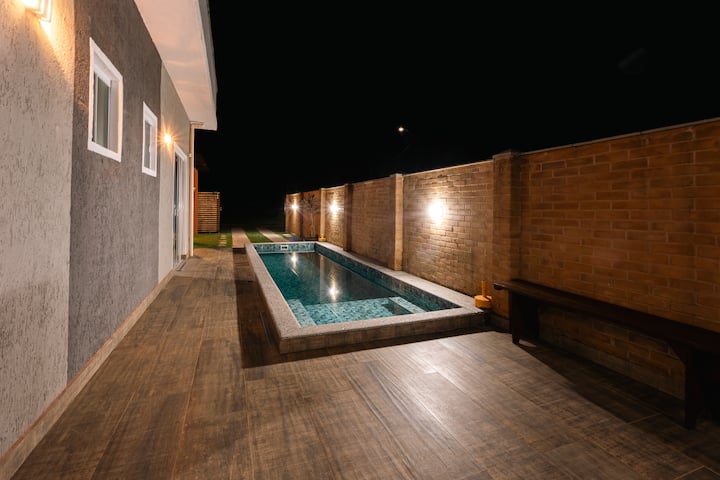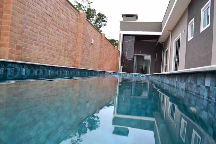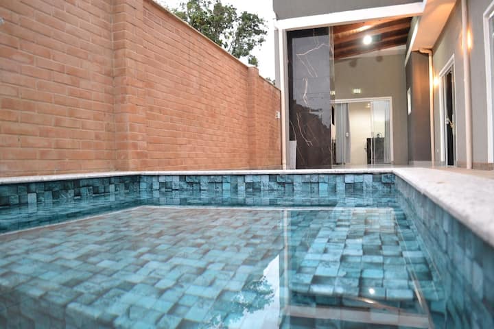 بيت عصري يضم 3 أجنحة وحمام سباحة ومساحة للاستقبال