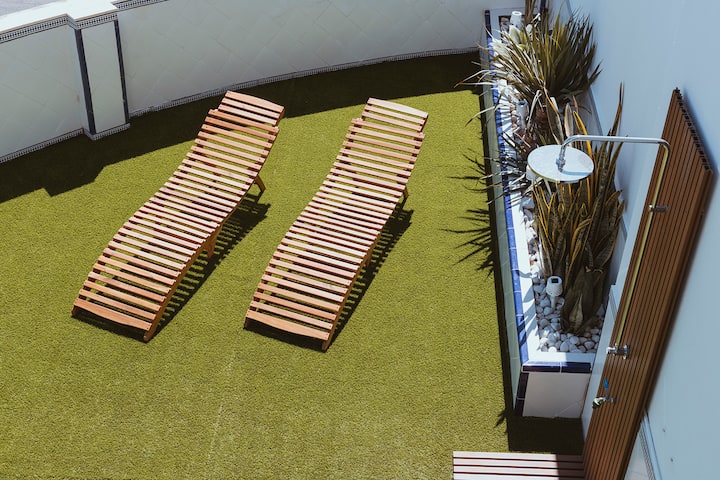 شقة مع شرفة كبيرة بجانب الشاطئ