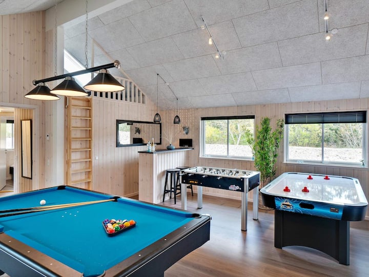 بيت عطلات مع حمام سباحة وحوض استحمام ساخن وساونا في هوستروب ستراند. عندما تذهب العائلة بأكملها في عطلة معًا، قد يكون من الصعب العثور على منزل صيفي كبير بما فيه الكفاية – ولكن هذا ليس هو الحال هنا! يمكن أن يستوعب هذا البيت الصيفي ما يصل إلى 20 شخصًا ويحتوي على 8 غرف نوم و4 أماكن للنوم في الدور العلوي، وهو دائمًا يحظى بشعبية لدى الأطفال والشباب في الأسرة. يقع بيت العطلات في شاطئ هوستروب على الساحل الغربي وهو مليء بالأنشطة. على سبيل المثال، يمكنكم لعب لعبة البلياردو أو التنافس ضد بعضكم البعض في تنس الطاولة أو هوكي الهواء أو كرة القدم على الطاولة. في غرفة النشاط، ستجد أيضًا لعبة سهام وبلاستيشن 4. يمكن تقديم المشروبات الباردة من البار في الزاوية. إذا كنت مهتمًا بالعافية والاسترخاء، فلا تقلق – فهناك حوض استحمام ساخن فاخر وساونا دافئة حيث يمكنك الاسترخاء بعد السباحة في حمام السباحة الداخلي الذي تبلغ مساحته 20 مترًا مربعًا. يحتوي حمام السباحة على درجات رومانية لسهولة الدخول والخروج، وزلاقة مائية، ونظام تيار مضاد. يحتوي المطبخ الكبير/غرفة العائلة على مساحة كافية للجميع للاستمتاع بخبز الكعك أو ممارسة الألعاب أو مشاهدة فيلم معًا. تم تجهيز المطبخ لجعل الطهي أسهل لكثير من الناس، مع فرنين، وغسالة صحون، ومغسلتين، والكثير من مساحة الثلاجة/المجمد. تحتوي غرفة المعيشة أيضًا على موقد حطب لإبقائك دافئًا في الأيام الباردة. تنقسم غرف النوم الثمانية في الكوخ إلى ثلاث مناطق نوم مختلفة، لكل منها حمامها الخاص. هذا مثالي لعدة عائلات تقضي إجازتها معًا ولكنها تريد القليل من الهدوء والخصوصية. في الهواء الطلق، هناك الكثير من المساحات والمرافق للمتعة والألعاب. تحتوي الحديقة على ترامبولين ومجموعة أرجوحة وصندوق رمل، بينما يعد العشب مثاليًا للعب الكرة والتجول. تم تجهيز التراس بمكان للشواء وأثاث الحديقة، مما يجعله مثاليًا لقضاء أمسية شواء مريحة في الهواء الطلق. تشتهر هوستروب بشاطئها الرملي الجميل الواسع مع مناظر طبيعية جميلة من الكثبان الرملية. حصل الشاطئ على العلم الأزرق، وبالتالي فهو وجهة واضحة للنزهة. في الصيف، يمكنك الاسترخاء تحت أشعة الشمس، ولكن حتى في الأيام الباردة، يعد الشاطئ مثاليًا للرياضات والأنشطة المائية، إذا كان هذا هو الشيء المفضل لديك. ليس بعيدًا عن المنزل، ستجد التسوق والمطاعم. Blåbjerg Klitplantage هو مكان جميل للذهاب للتنزه أو ركوب الدراجات الجبلية. غير متاح للإيجار لمجموعات الشباب. قد يتم فرض إيداع قابل للاسترداد في موعد أقرب لتاريخ تسجيل الوصول. يضمن إيداع الضمان إقامة سلسة ويغطي أي خدمات أو رسوم استهلاك إضافية. يغطي هذا الإيداع المرافق المستهلكة أثناء إقامتك وأي خدمات إضافية قد يتم أخذها. سيتم تعديل المبلغ النهائي بناءً على قراءات العداد الفعلية، والاستخدام الفعلي للخدمات الإضافية، وسيتم رد أي رصيد متبقي في غضون 21 يومًا بعد تسجيل المغادرة. يعمل هذا الإيداع ببساطة كدفعة مسبقة مقابل الرسوم التي ستدفعها على أي حال، مما يضمن تجربة إقامة وتسجيل مغادرة سلسة.
