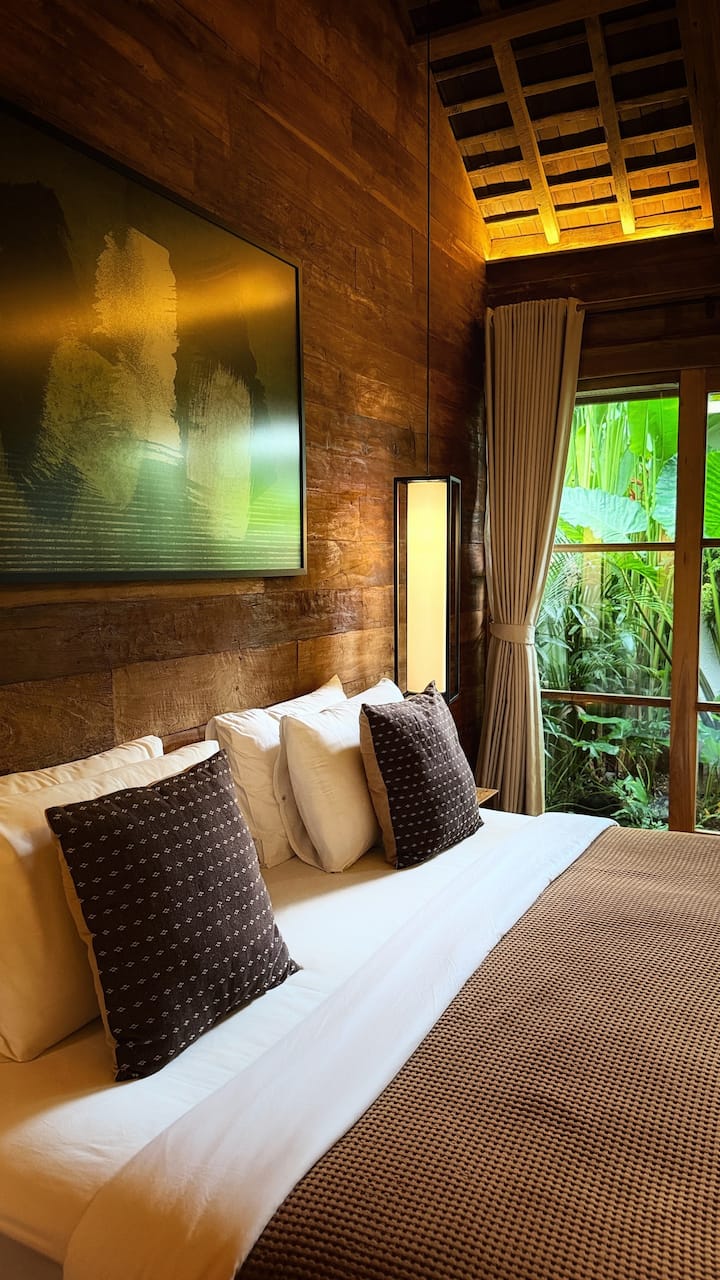 تقع فيلا KAJU بجوار معبد مقدس، وتحيط بها حقول الأرز الخضراء، حيث تدمج روح بالي الأصيلة مع الراحة العصرية والأناقة الطبيعية.