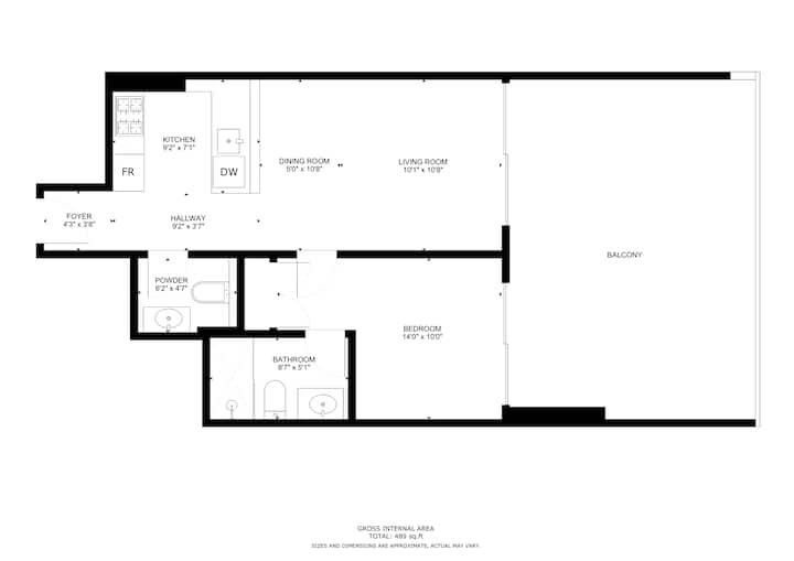 15 نورثسايد تاور 2 - غرفة نوم واحدة واسعة