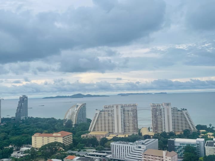 شقة بإطلالة على البحر في باتايا في الطابق 28،بالقرب من 21 محطة