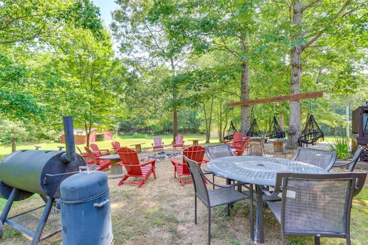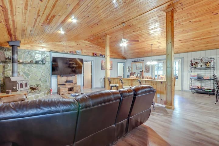 كوخ كبير مع حوض استحمام ساخن وموقد نار وغرفة ألعاب