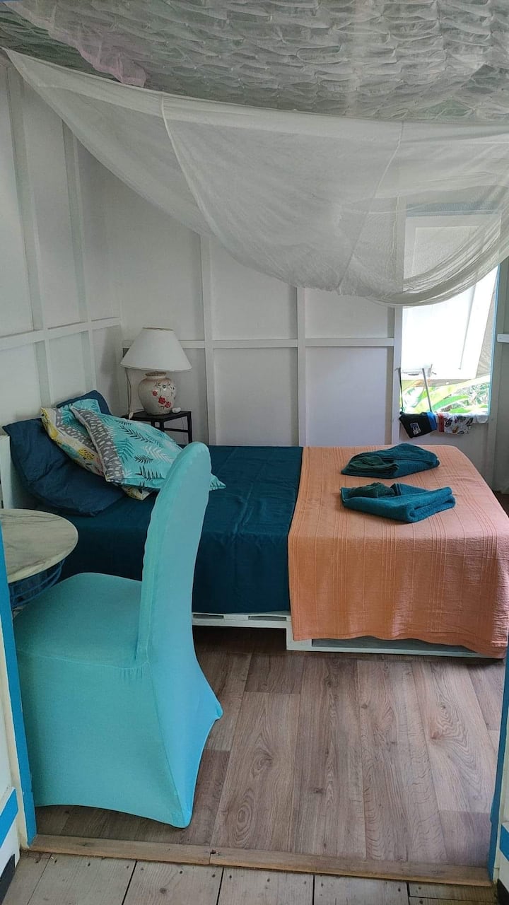 جنتي الصغيرة تحت تصرفك لإعادة شحن بطارياتك: ستضعك الطيور وصوت النهر عند الاستيقاظ في الجو الذي أعيش فيه يوميًا، والأشياء الهادئة والبسيطة التي لا تقدر بثمن لصحة جسدية وعقلية جيدة.