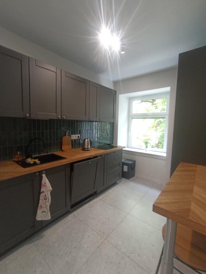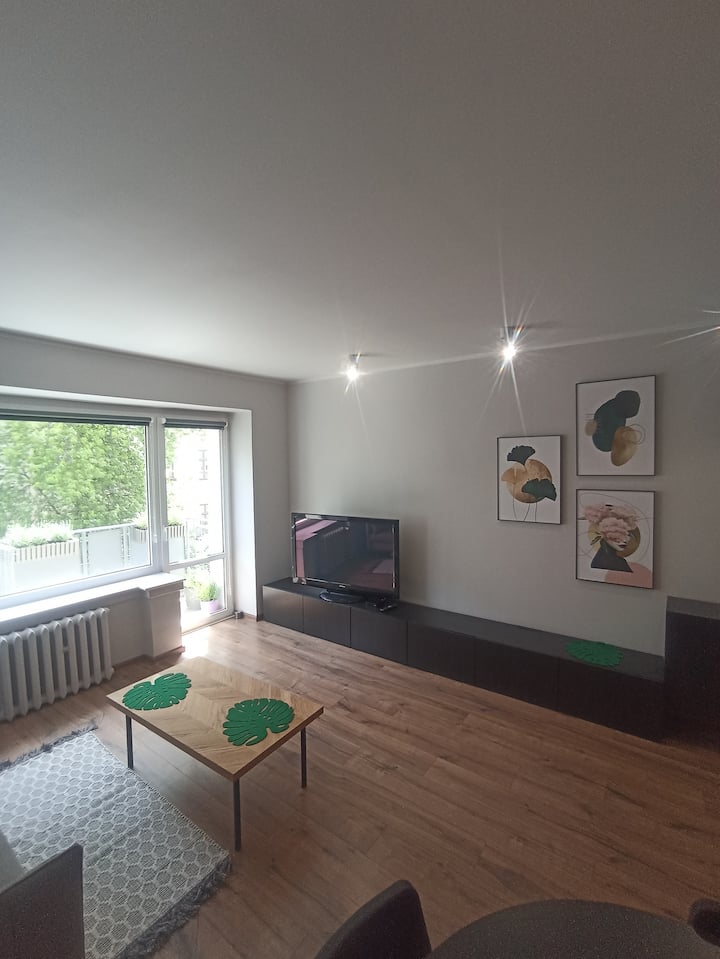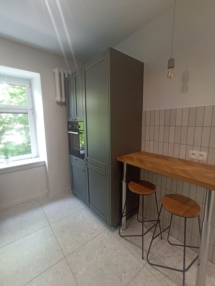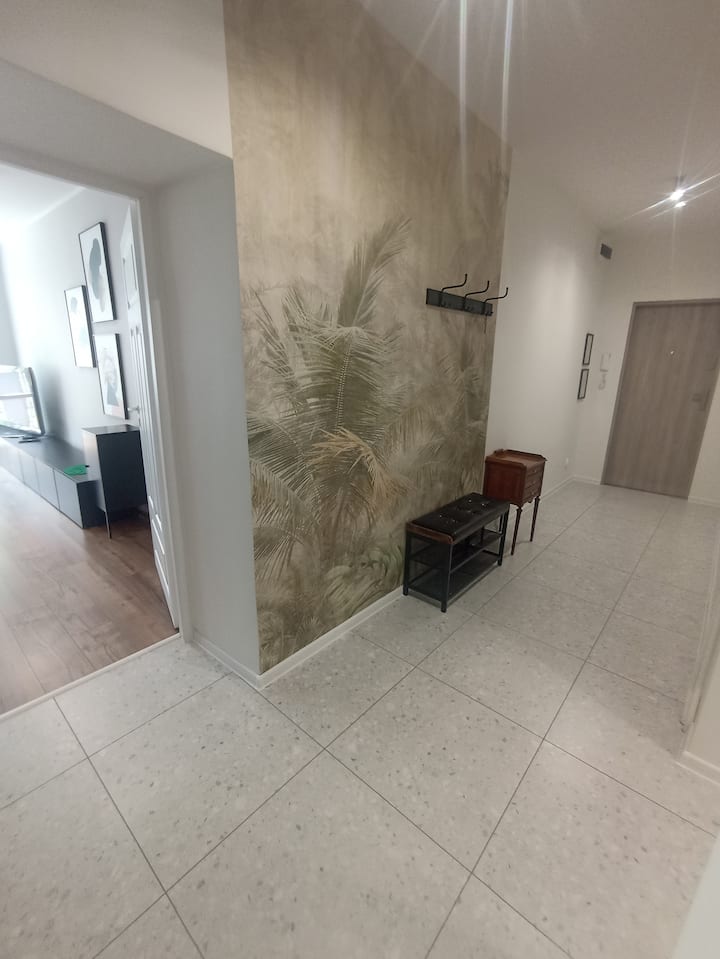 قمنا أنا وزوجتي بتجديد هذه المساحة البالغة 70 مترًا مربعًا لجميع الذين يأتون إلى لودز لأغراض مختلفة: مهنية أو سياحية أو رياضية، على سبيل المثال للمشاركة في سباق شارع بيوتركوفسكا.