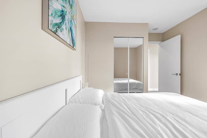 غرفة نوم واحدة حديثة نظيفة مع إطلالة خلابة ومكيف هواء وموقف سيارات مجاني