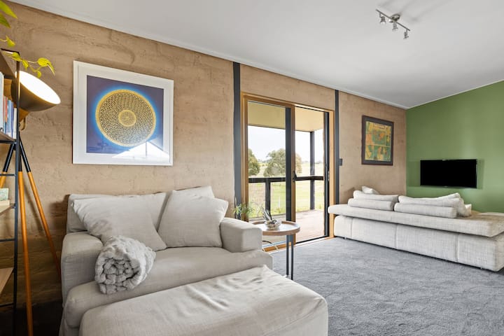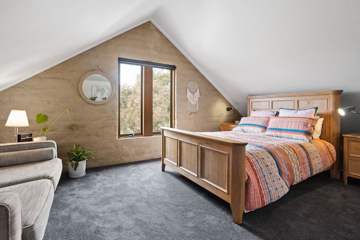 غرفة كبيرة بسرير كوين في بيت بيئي