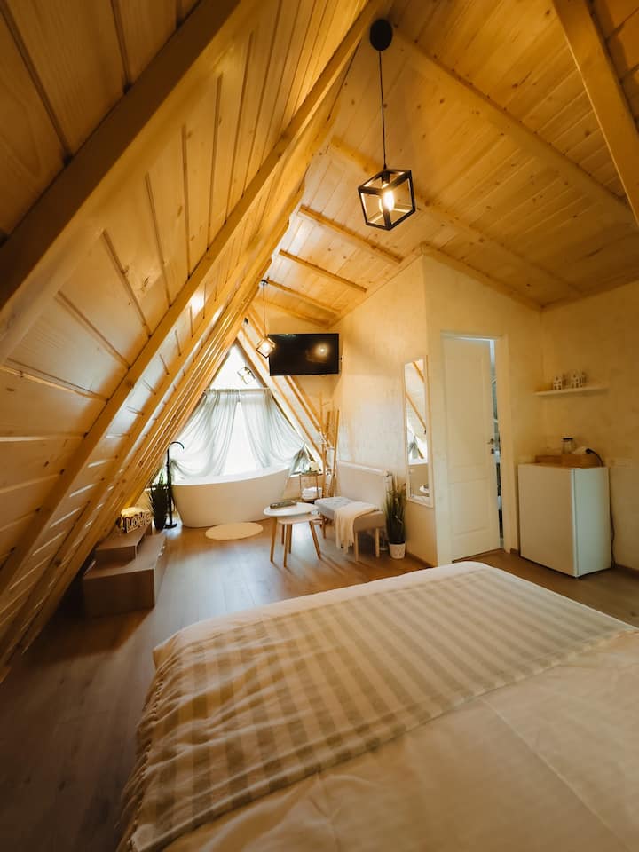 (3.3) الغرفة مع حوض الاستحمام في مقصورة على شكل حرف A