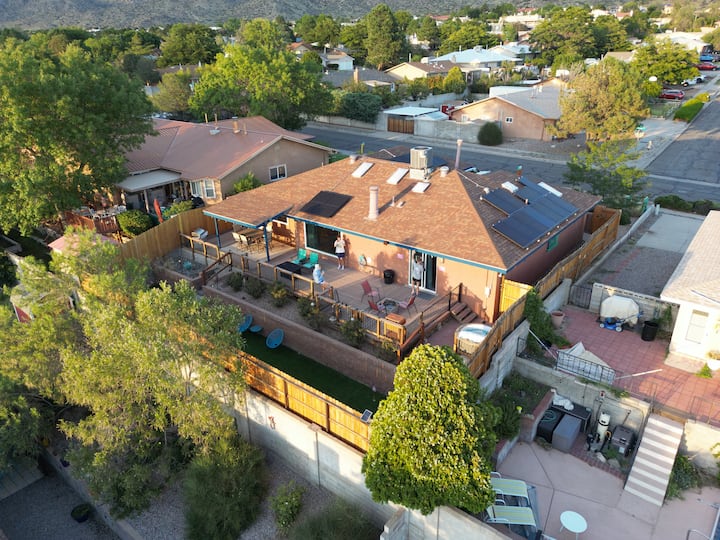 ⭐️ فناء يطل على مدينة ABQ مجهز بشواء، ومبرد كبير، وحفرة نار (بدء الغاز الطبيعي/حرق الخشب)، وساحة عشب مسيجة بالكامل مع ألعاب الكلاب، وسقيفة مليئة بألعاب الفناء، وأكثر من ذلك بكثير!