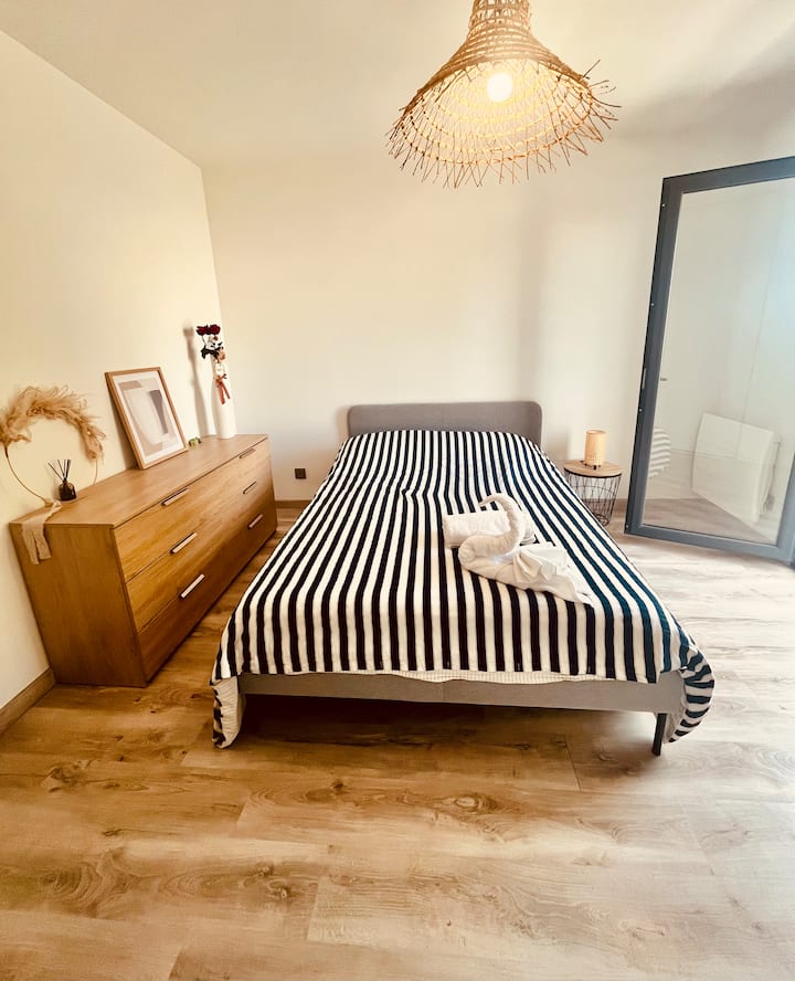 غرفة مريحة وتراس وحمام خاص