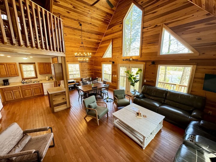 14 ضيفًا، 7 أسرّة، 4 غرف نوم، كوخ على واجهة بحيرة مع حوض استحمام ساخن