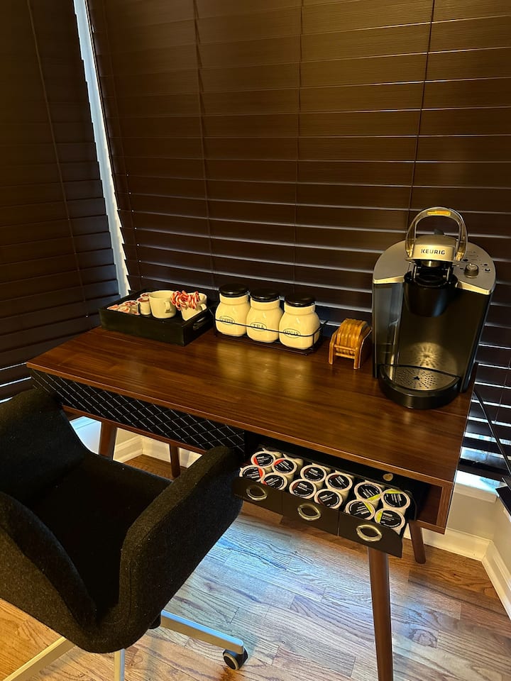 غرفة ضيوف مع مكتب ووسائل راحة