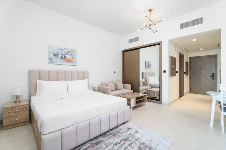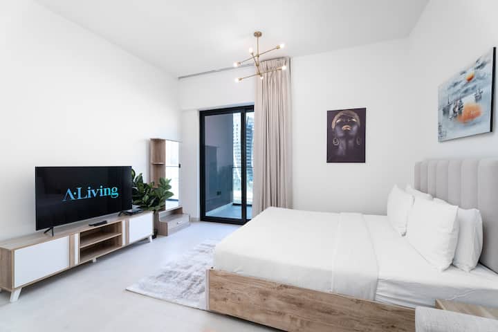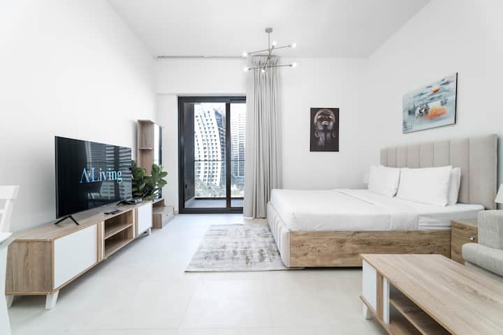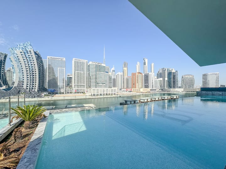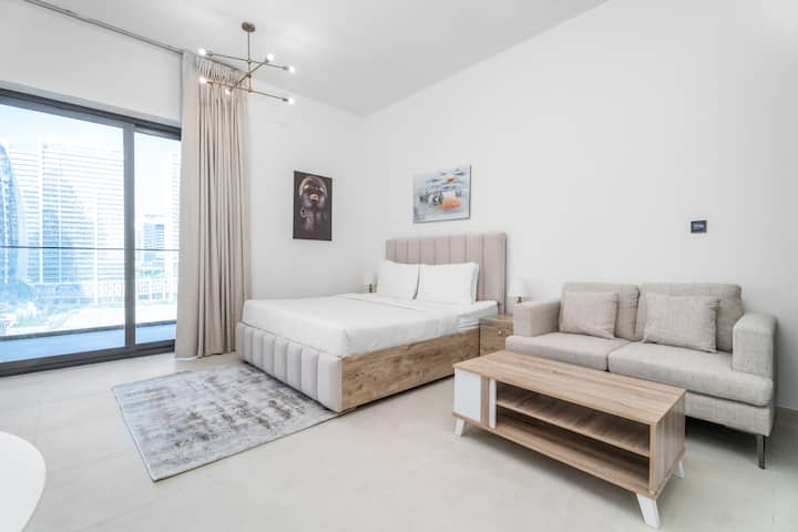 استوديو أنيق بإطلالة على قناة بن غاطي وبرج خليفة