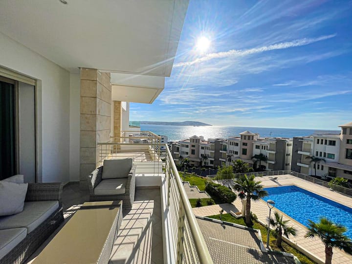 شقة T2 هادئة، إطلالة رائعة على البحر مع حمام سباحة