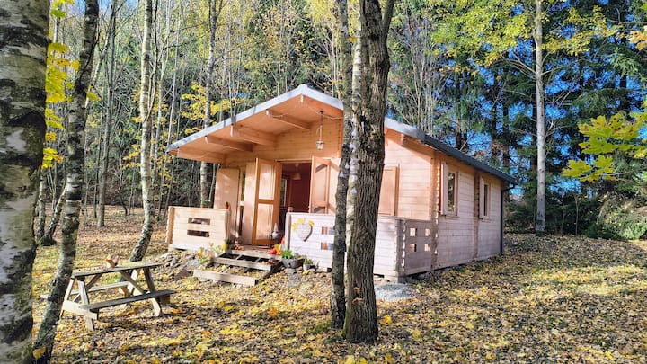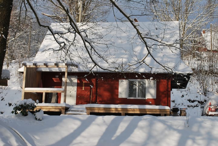 كوخ 2 بجانب جدول مع مدفأة ، يطل على الجدول