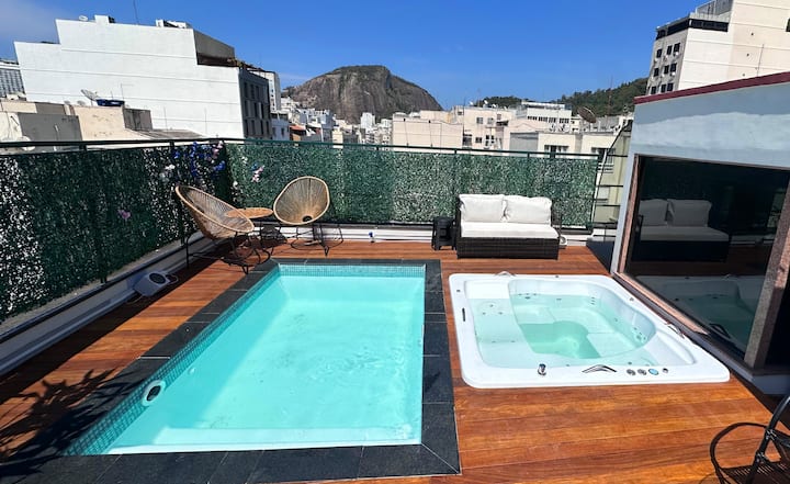شقة فاخرة مع جاكوزي، على بعد 4 دقائق من شاطئ كوباكابانا