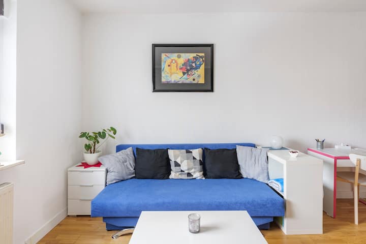 شقة مشرقة مع موقف سيارات مجاني وقريب من القطار