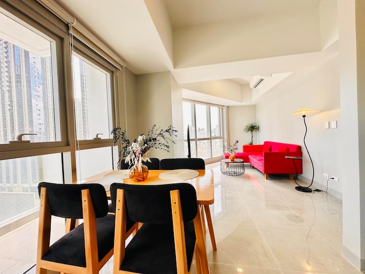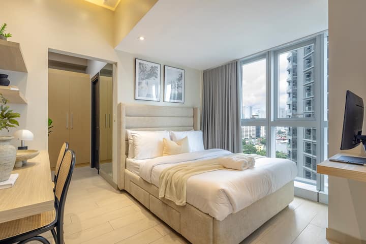 شقة فاخرة في الجزء العلوي من المدينة بغرفتي نوم + حوض استحمام | العمل والاسترخاء في BGC