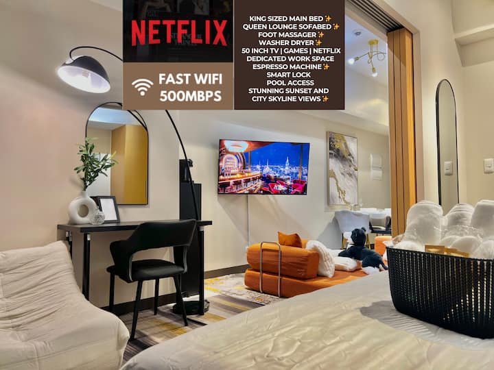 LuxeStaysMnl سرير علوي أنيق في منطقة حضرية 400 ميجابت في الثانية مع مسبح