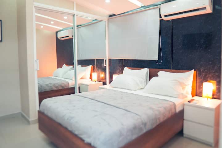 واحة فاخرة مضيئة وحديثة، سرير كوين+واي فاي+صالة ألعاب رياضية+حديقة+مكيف هواء