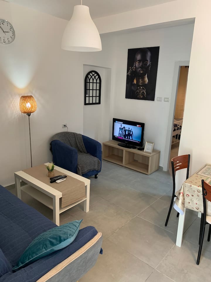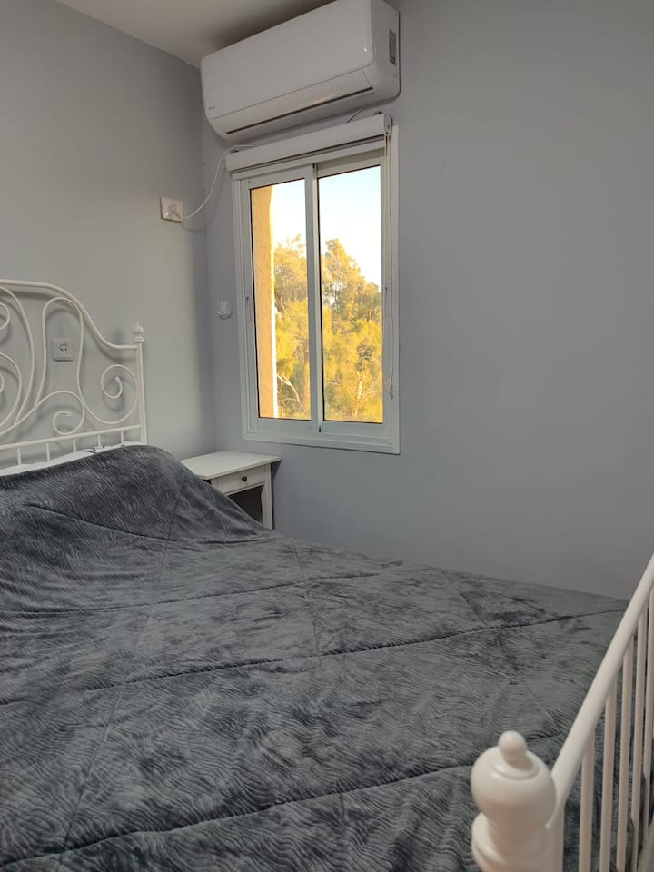 شقة مضيئة ومريحة بغرفة نوم واحدة مع مكيف هواء ومساحة عمل