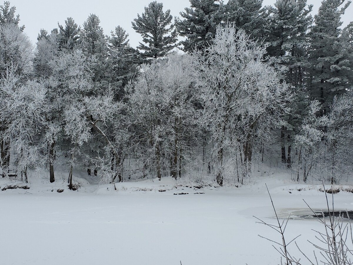 تقع في مينيسوتا نورث وودز في منتصف الطريق بين مينيابوليس / سانت. بول والشاطئ الشمالي الخلاب لبحيرة سوبيريور، بيت الضيافة هذا الجذاب هو جزء من ملاذ طبيعي هادئ بالقرب من المدن الصغيرة الساحرة، بالإضافة إلى بانينغ ستيت بارك ودرب ويلارد مونجر الحكومي للدراجات ومتنزه روبنسون (تسلق الصخور والجليد). سواء كان ذلك للاسترخاء العميق أو التجديد أو قضاء عطلة رومانسية أو ببساطة التواصل مع الطبيعة، فإن هذه الـ 30 فدانًا توفر الغابات والبرك السريعة والمروج مع مسارات في جميع الأنحاء.
