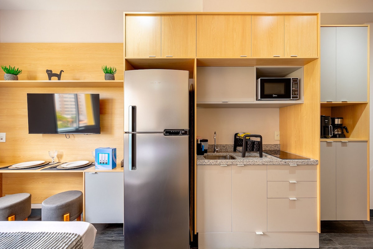 Espaço perfeito na Chácara Inglesa, área nobre de SBC! Acomoda até 4 pessoas. Completo e aconchegante, com cozinha equipada, estação de trabalho, Smart TV com acesso a streaming, cama queen size, espelho icônico, aquecedor de toalhas e décor sofisticada. Conta com área de serviço, sala integrada e localização excelente: 15 min do Sacomã - SP, 50 min de Santos e 22 min de São Caetano. O prédio não possui garagem, mas os hóspedes e moradores costumam estacionar nas ruas próximas com tranquilidade