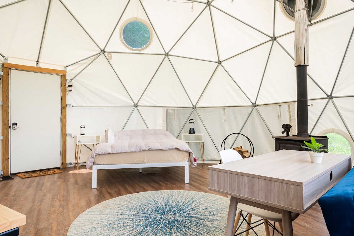 مرحبًا بك في القبة في مزارع المستقبل الطويل! تم تصميم مسكننا الفريد لتوفير تجربة مريحة لـ 2-4 ضيوف، مع التركيز على تقليل تأثيرنا البيئي ودعم الزراعة البيئية المحلية. (لا توجد حاليًا حيوانات في المزرعة، حيث أن هذه في المقام الأول مزرعة أشجار جوز). توفر قبتنا إطلالة خلابة على أرضنا وتلالنا وبركنا الزراعية التي تبلغ مساحتها 171 فدانًا، مما يسمح لك بالتواصل حقًا مع الجمال الطبيعي للمنطقة.