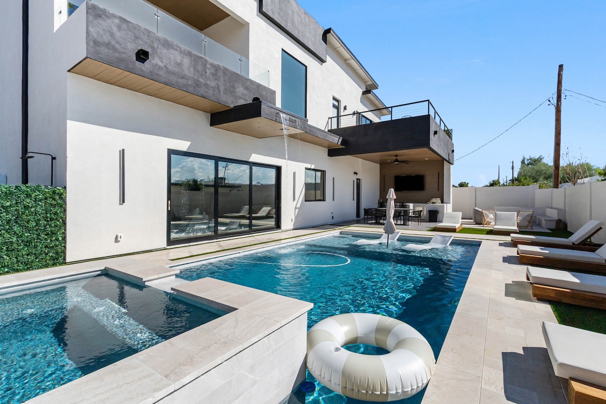 Welcome to the ultimate Scottsdale getaway! This newly built luxury retreat is designed to deliver the perfect mix of style, comfort, and fun. With over 4,200 sq. ft. of thoughtfully curated living space, six bedrooms, and four and a half bathrooms, this spacious two-story home easily accommodates up to 13 guests. Whether you’re lounging by the sparkling pool, hosting a movie night in the private theater, or exploring nearby shopping, golf, and dining, this home is the perfect setting for an unf