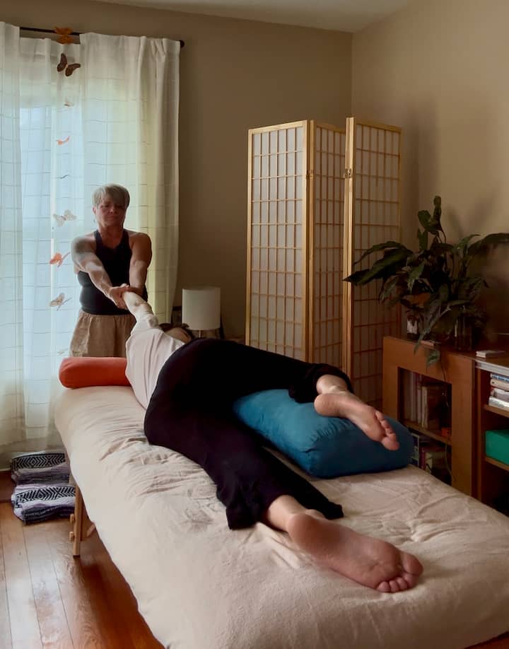 2. ممارسة اليوغا التايلاندية للعظام الموجهة – تدفق لطيف مع لمسة داعمة وتعديلات تخلص من التوتر وتعزز التوازن.