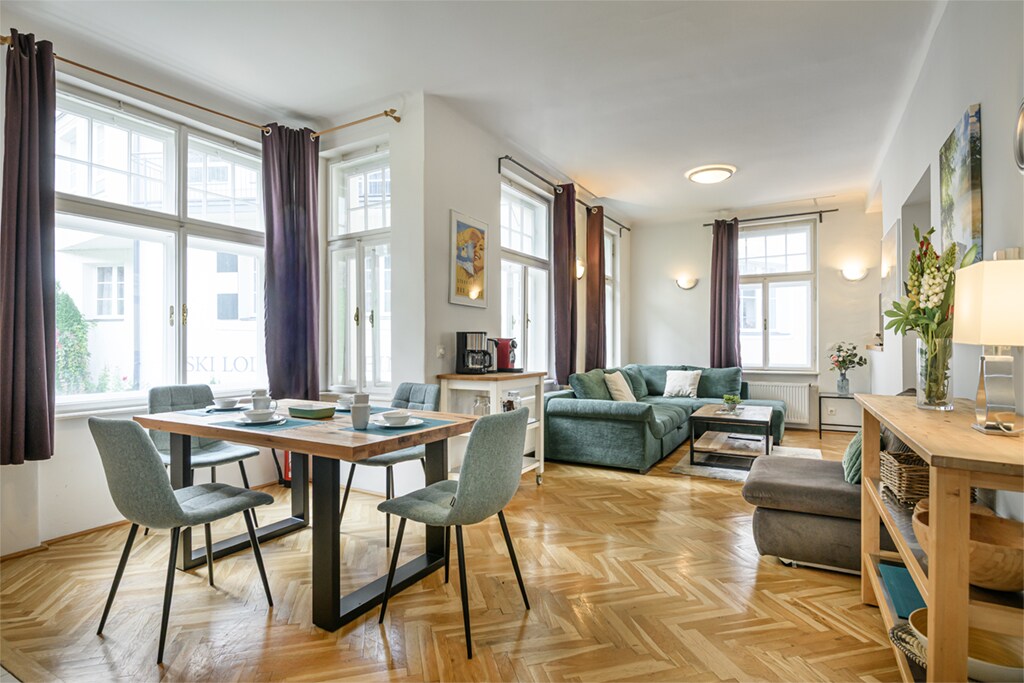 من خلال الدخول الخاص بك مع KeyCode، يمكنك الدخول إلى الشقة "Frühling" المغمورة بالضوء في قلب شبتال آن دراو. مع مساحة تتسع لما يصل إلى 6 أشخاص، فهي تدعوك لترك الحياة اليومية وراءك. مطبخ عصري ومنطقة أنيقة للمعيشة وتناول الطعام وتلفزيون سوني ذكي يدعوك لقضاء أمسيات طويلة. يتيح لك الإنترنت السريع مع طاولة القهوة أو كراسي القراءة إمكانية العمل المتنقل والمكتب المنزلي. موقف السيارات في العقار؛ الأطباء والتسوق ومحطة القطار على بعد 5 دقائق سيرًا على الأقدام.