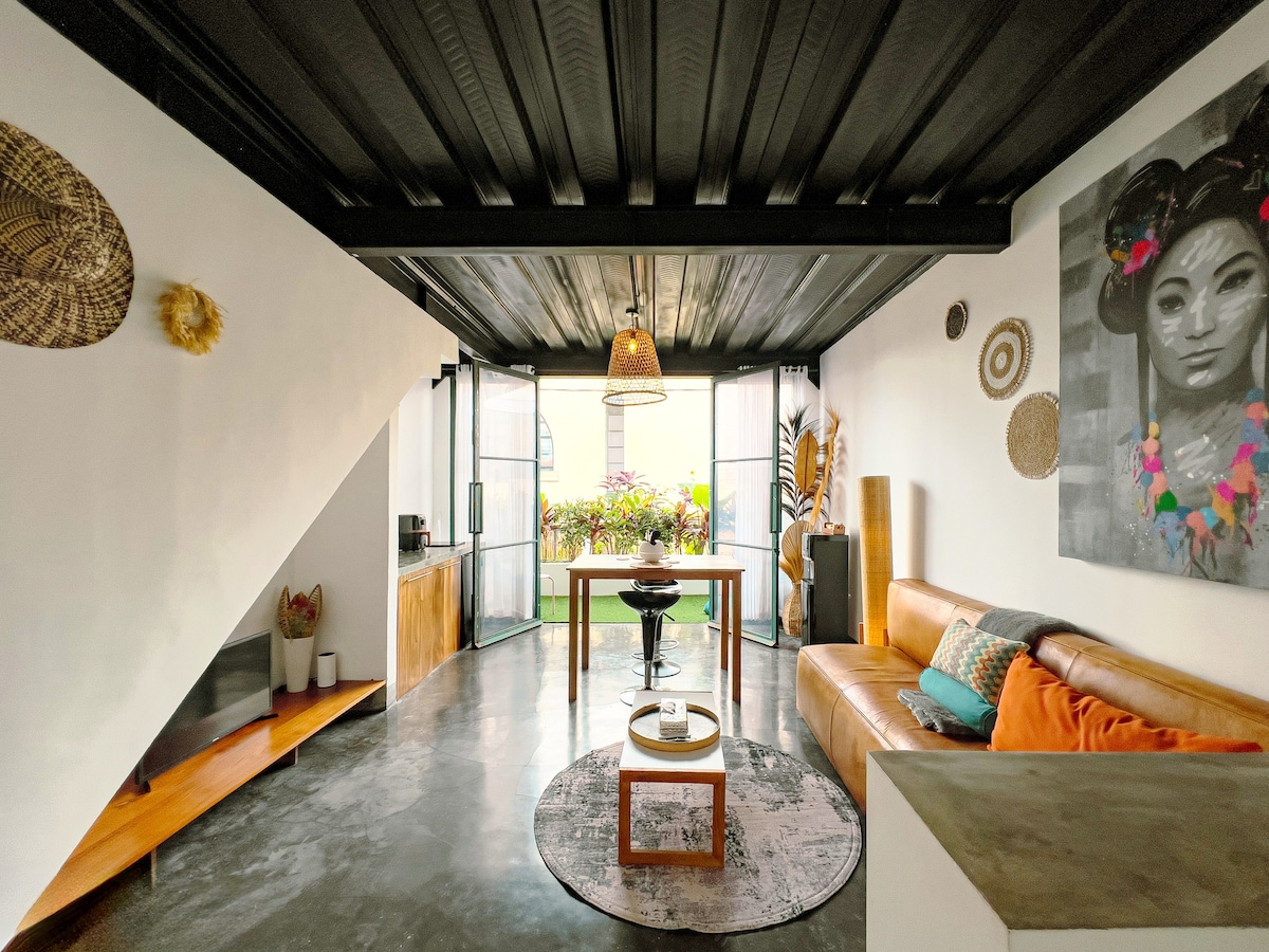 Kick back and enjoy a comfortable stay in this modern 1-bedroom loft located in a quiet area of Babakan, Canggu. The villa features a fully enclosed living space with TV, dining area, equipped kitchen, private pool, and garden — perfect for relaxing or working with 200 Mbps high-speed internet. Conveniently close to cafes, restaurants, gyms, and just minutes from the beach, this hideaway offers both tranquility and easy access to Canggu’s lifestyle.d relax in this calm, stylish space.