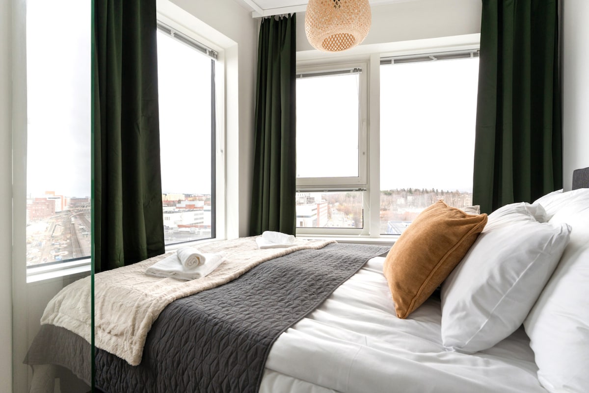 We promise you will feel right at home in our two-bedroom apartment, located between the city centre and the lake. We call the apartment "Top of the Lake" due to its views of lake Näsijärvi from the 13th floor. The apartment has two balconies, offering amazing lake and city views. Our two bedrooms offer high-quality mattresses and linen, as well as black-out curtains, and can sleep up to 5 people. We offer one free parking spot for guests.