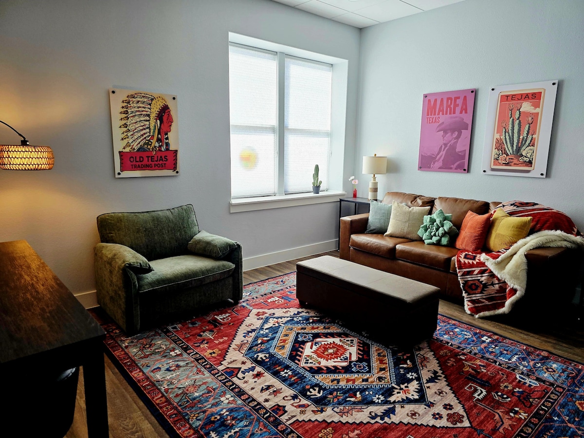 يقع في وسط مدينة دينيسون التاريخية الجميلة، تكساس. توفر هذه الشقة العلوية التاريخية الكثير من السحر والراحة. استمتع بالمناظر الجميلة للشارع الرئيسي من النوافذ الزجاجية الممتدة من الأرض إلى السقف في الغرفة الرئيسية للشقة العلوية. توفر الشقة العلوية ذات الطراز الصناعي المسكن المثالي للإقامة أو الترفيه أو ببساطة الاسترخاء مع الأصدقاء أو العائلة. سواء كنت تزور المتعة أو العمل، فإنها تقع في منطقة الترفيه المثالية في وسط مدينة دينيسون. على بعد ثوانٍ فقط من أفضل المتاجر والمطاعم والحانات!