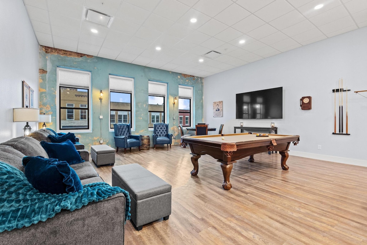 انغمس في السحر الخالد لشقق كاتي ديبوت العلوية، التي تقع في نهاية الشارع الرئيسي في وسط مدينة دينيسون النابض بالحياة. استقبل الثريات الرائعة والتركيبات الشهيرة التي تحدد أناقة المستودع. داخل الشقة العلوية، استمتع بإطلالات على مسارات محطة القطار التاريخية وقطار MKT العتيق. اكتشف وسائل الراحة مثل المقهى ومصنع النبيذ وخيارات تناول الطعام والتسوق في البوتيك، وكلها في الموقع. استمتع بالمغامرة في وسط مدينة دينيسون لمزيد من الطعام والأنشطة، وكل ذلك على مسافة قريبة سيرًا على الأقدام.