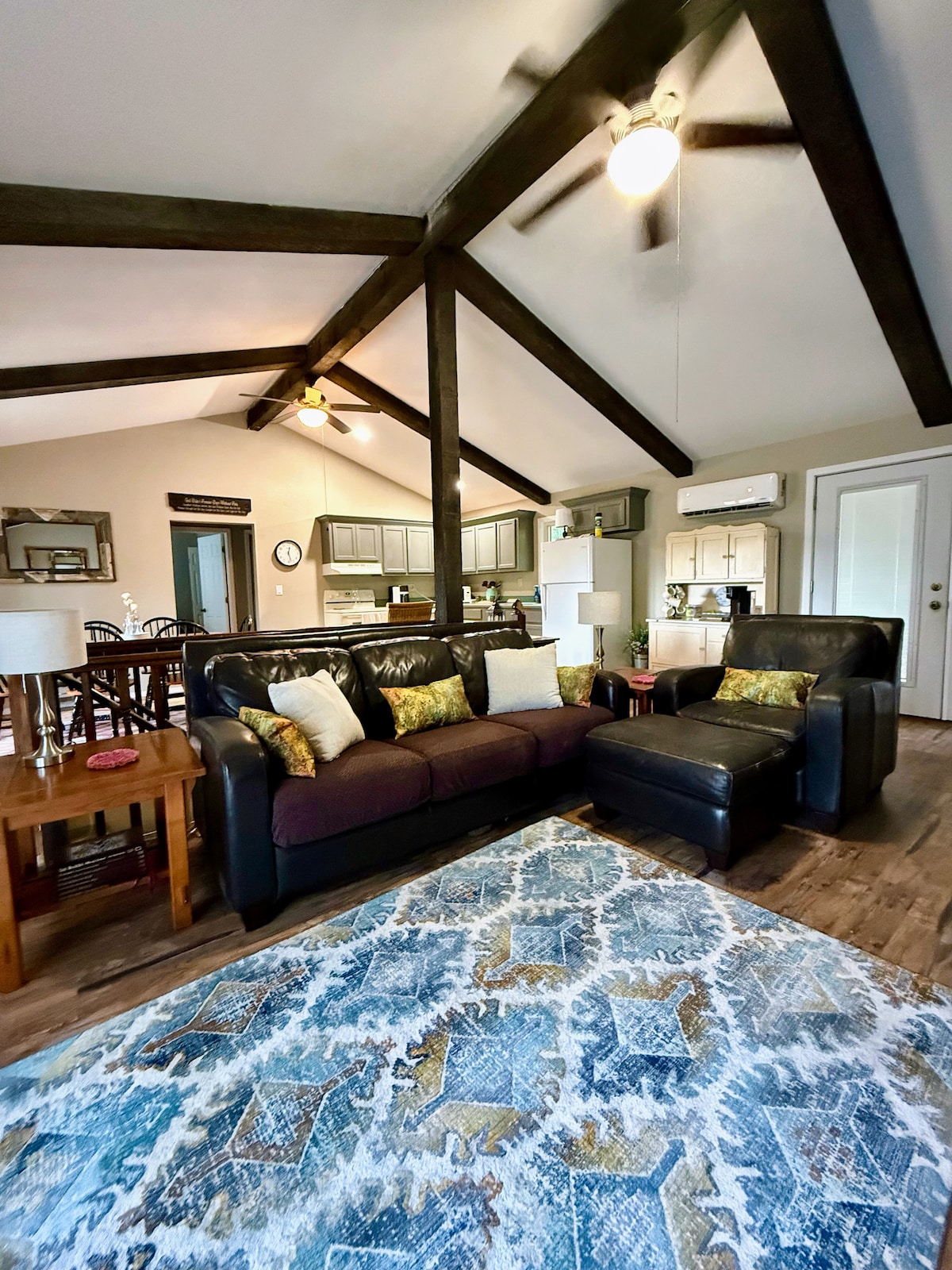 يقع هذا البيت الفسيح والهادئ على قطعة أرض جميلة مغطاة بالأشجار على بعد مسافة قصيرة سيرًا على الأقدام من نهر الربيع وعلى بعد دقائق من متنزه ماموث سبرينغ الحكومي الجميل. مكان مثالي إما لم شمل الأسرة أو ملاذ لموظفي الكنيسة أو مجرد جمع بعض الأصدقاء للاستمتاع بالهواء الطلق الرائع مع صيد الأسماك والصيد والتجديف بالكاياك وما شابه ذلك. سواء كنتما زوجين تبحثان عن استراحة قصيرة أو عائلة، فهذا مكان رائع للاسترخاء والحصول على بعض المرح الذي تشتد الحاجة إليه.