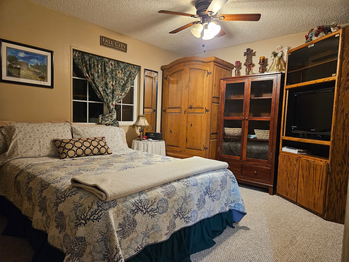 تحقق ذاتيًا من جناح الضيوف المريح والهادئ في الطابق السفلي هذا الخاص، والمغلق عن طوابق بيت المدينة العليا مع مدخل رقمي خاص به مع غرفة نوم بحجم كوين وغرفة تلفزيون منفصلة مع أريكة وحمام كامل ومطبخ صغير وطاولة مطبخ تتسع لأربعة أشخاص. تم استبدال سرير بحجم كوين وفراش وأريكة غرفة معيشة مؤخرًا! يقع على بعد 5 دقائق من شلالات سنوكوالمي وملعب الغولف وI -90 و25 دقيقة من سنوكوالمي للتزلج وبلفيو (20 دقيقة) وسياتل (35 دقيقة).