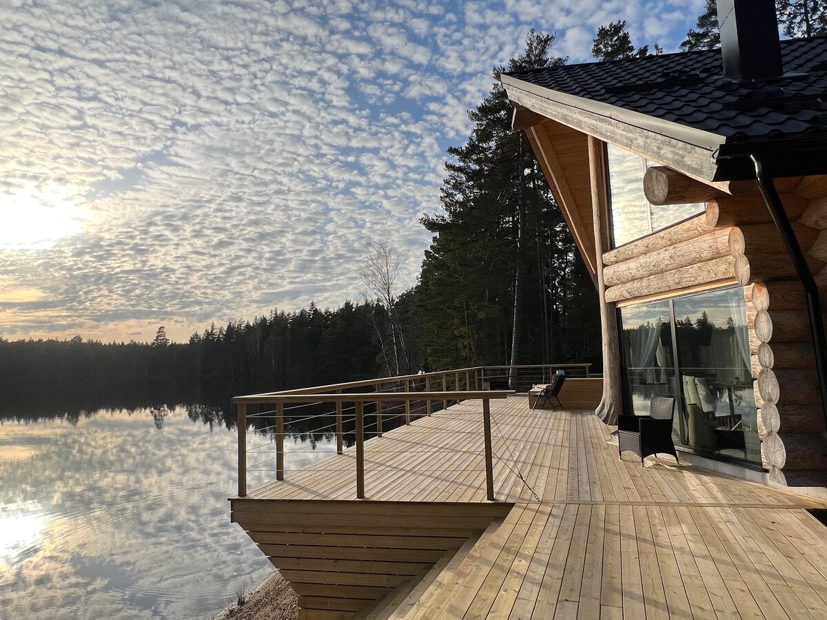 كوخ تم تجديده حديثا مع ساونا على ضفاف البحيرة
