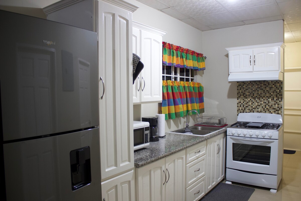 شقة مستقلة بغرفة نوم واحدة مع مدخلها الخاص وممرها الخاص. تقع على طريق وصول رئيسي على مشارف أريما مع سهولة الوصول إلى وسائل النقل العام بالإضافة إلى سيارات الأجرة وماكسيس. تبعد حوالي 15 دقيقة عن مطار بياركو الدولي و20 دقيقة عن وسط مدينة أريما. الشقة مفروشة بالكامل ، غرفة نوم مكيفة الهواء ، مياه ساخنة وباردة ، إنترنت لاسلكي ، تلفزيون كابلي ، مكواة وطاولة كي الملابس ، موقف سيارات آمن ، مرفق كاميرا مراقبة.