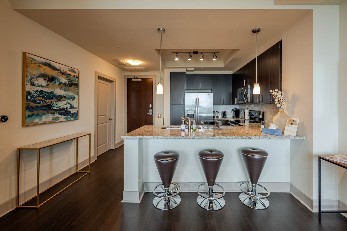 مرحبًا بك في شقتنا الحديثة المكونة من غرفة نوم واحدة في قلب ماكلين! توفر هذه الشقة الحديثة المفروشة بالكامل مزيجًا مثاليًا من الراحة والملاءمة. استمتع بمنطقة معيشة فاخرة ومطبخ مجهز بالكامل ووسائل راحة عصرية وحمام سباحة على السطح على طراز المنتجع وصالة ألعاب رياضية حديثة. سواء كنت هنا للسفر بغرض العمل أو لقضاء عطلة، فقد تم تصميم بيتنا لتوفير كل ما تحتاجه لإقامة مريحة لا تنسى.