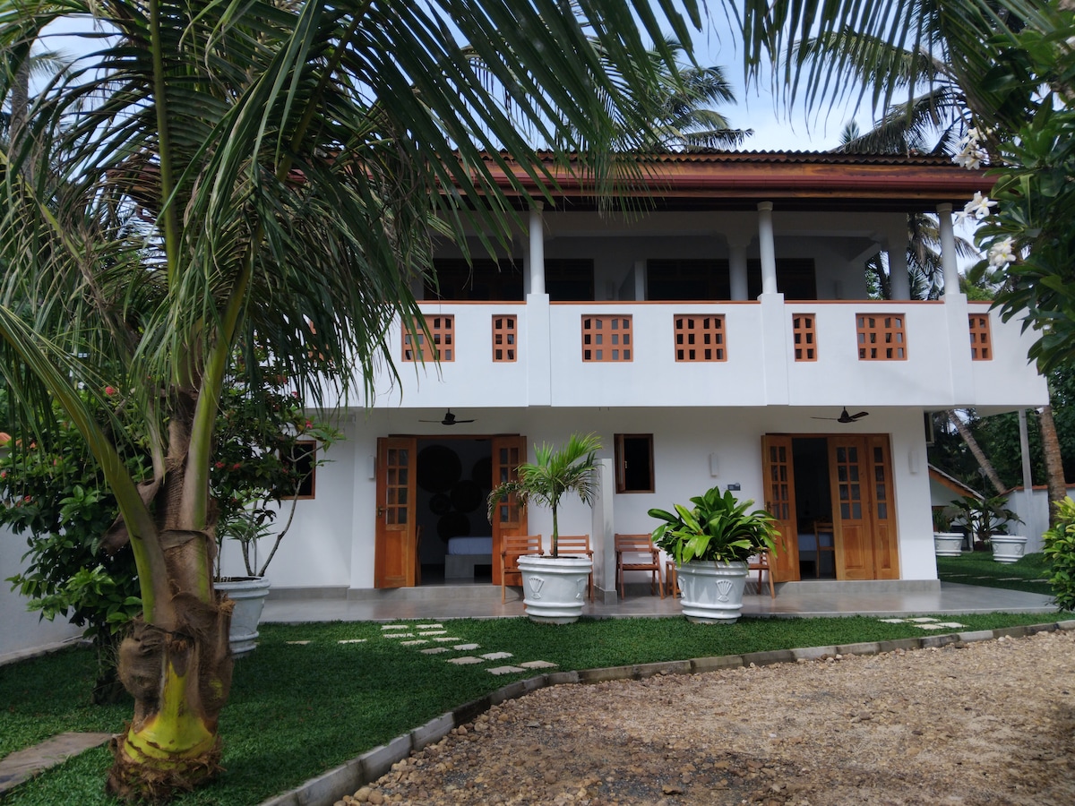 يقع بيت الضيوف الجميل على الطراز الاستعماري في فدان من الحدائق الاستوائية مع حمام سباحة لا نهائي وإطلالات على الغابة. تحتوي جميع غرفنا على أربعة أسرّة بأعمدة، ومكيف هواء، ومراوح سقفية، ودشات مياه ساخنة. يبعد كل من خليج السلاحف وتلة شجرة جوز الهند دقيقتين سيرًا على الأقدام عنا، وتبعد الحانات والمطاعم النابضة بالحياة في شاطئ ميريسا الرئيسي دقيقتين بالدراجة البخارية. نقدم أيضًا التدليك واليوغا ودروس ركوب الأمواج ودروس الطهي السريلانكية وخدمة سيارات الأجرة ورحلات مشاهدة الحيتان.