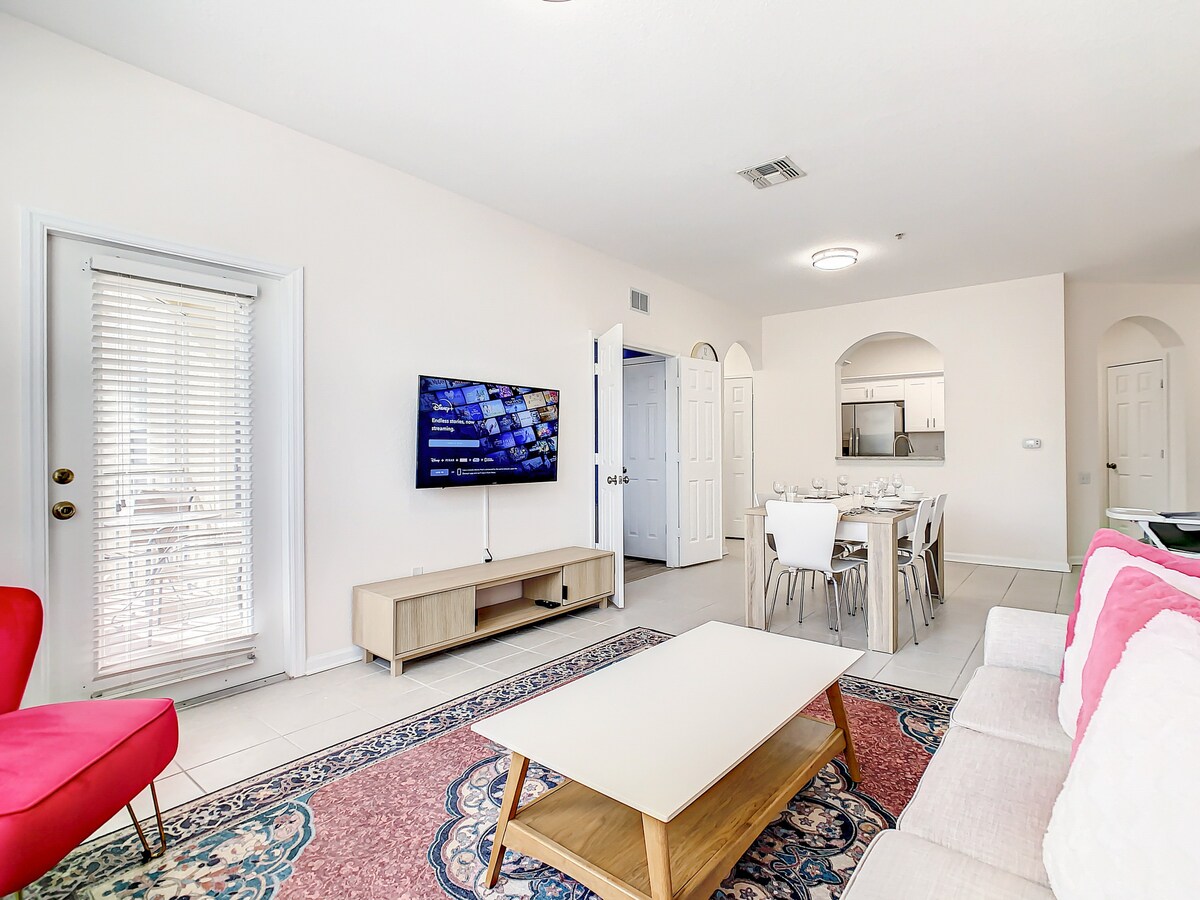 استمتع بعطلتك أو رحلة عملك في هذه الشقة ذات 1800 قدم مربع، والمزينة بشكل غني بثلاث غرف نوم وحمامين كاملين وحمام نصفي. تقع الشقة في مجتمع مسور على بعد 1.5 ميل فقط من بوابات ديزني. ترتيبات النوم لـ 8 ضيوف وأكثر مع توفير أغطية السرير والمناشف. مطبخ مجهز تجهيزًا كاملاً بالأواني والمقالي والعديد من مستلزمات المطبخ. غسالة ونشافة يوجد نادي على بعد خطوات قليلة من الشقة مع حمام سباحة ساخن ومركز لياقة بدنية وملعب تنس وملعب.